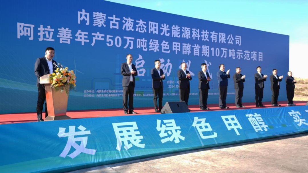10月27日,中国首个50万吨级电解水制氢耦合工业捕集二氧化碳合成绿色甲醇项目——阿拉善年产50万吨绿色甲醇首期10万吨示范项目正式启动。项目利用吉利绿色甲醇制备核心技术,创新的二氧化碳和氢合成制甲醇全流程工艺,具有完全自主知识产权,多项技术达到国际先进水平。